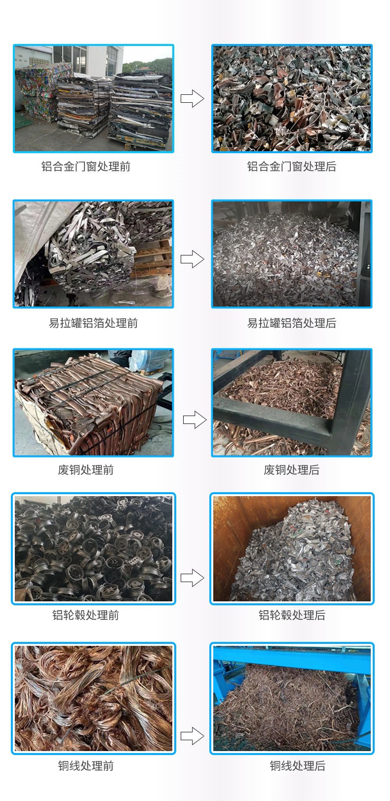 首誉机械自主研发生产的废旧金属破碎处理成套回收线主要是针对废铜、废钢,废铝(打包铝),发动机外壳等进行撕碎、分选等处理,便于回炉再生循环利用。