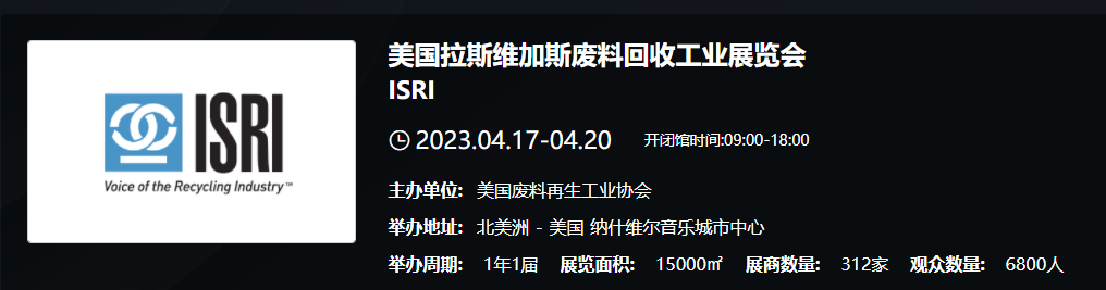 美国国际废料回收工业展览会是由美国废料回收工业协会举办的展会,是全球最大的废料回收行业展会,该展会每年都在不同的城市举办。